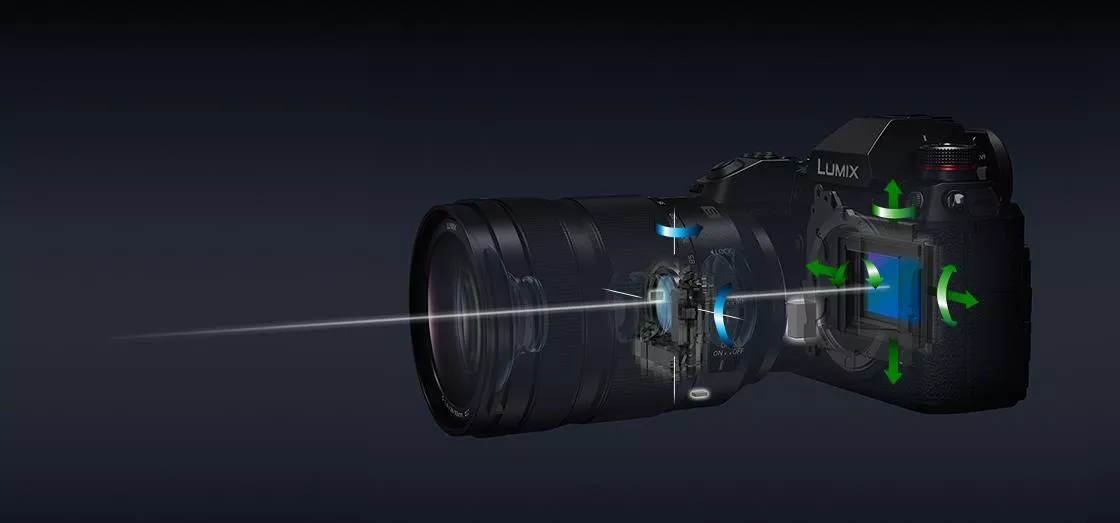 Rób zdjęcia z ręki, nie martwiąc się o wstrząsy: pomoże Ci w tym inteligentny system stabilizacji obrazu w 5 osiach Dual I.S. 2*. Kompensacja ta odpowiada 6-krotnemu zwiększeniu czasu trwania ekspozycji, co oznacza, że można stosować wolniejszą, 6-krokową migawkę — nawet przy najdłuższej ogniskowej.** Aparat LUMIX S1 eliminuje wstrząsy zarówno korpusu, jak i obiektywu, nawet w trybie tele. Funkcja ta działa także podczas robienia zdjęć i nagrywania filmów (w tym filmów w rozdzielczości 4K). Zaawansowana funkcja stabilizacji korpusu w pięciu osiach z kompensacją 5,5-punktową*** koryguje drgania wszystkich obiektywów, w tym także obiektywów niewyposażonych w optyczny stabilizator obrazu.